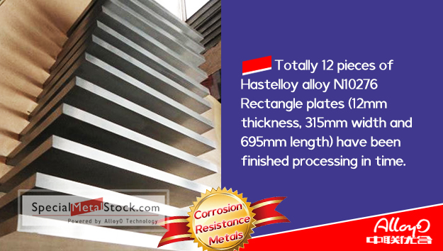 Totally 12 pieces of Hastelloy alloy N10276 Rectangle plates(12mm thickness, 315mm width and 695mm length) have been finished processing in time.